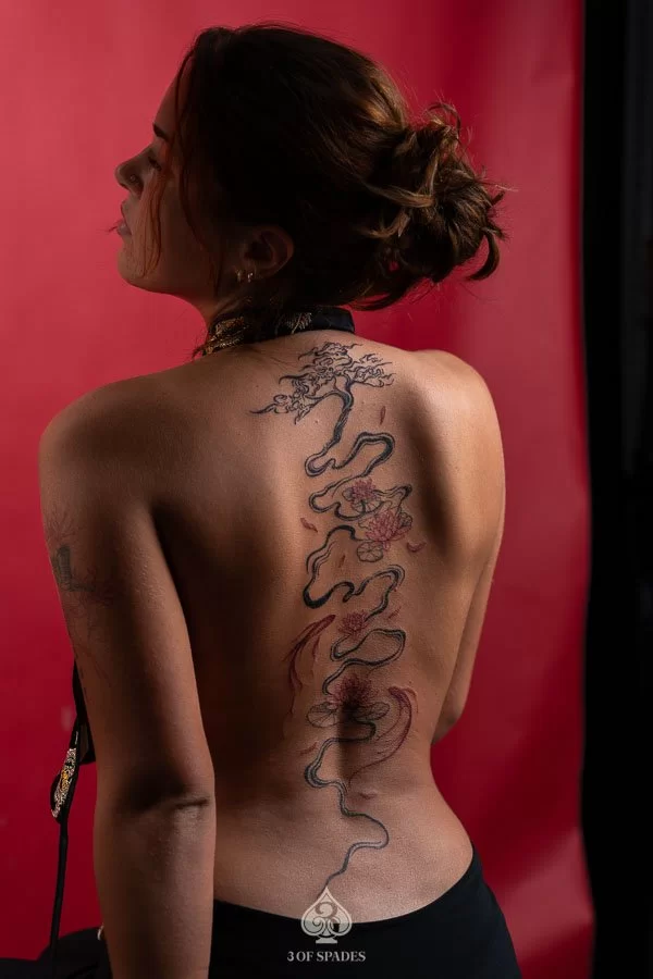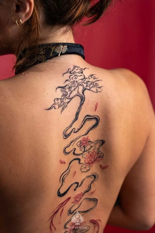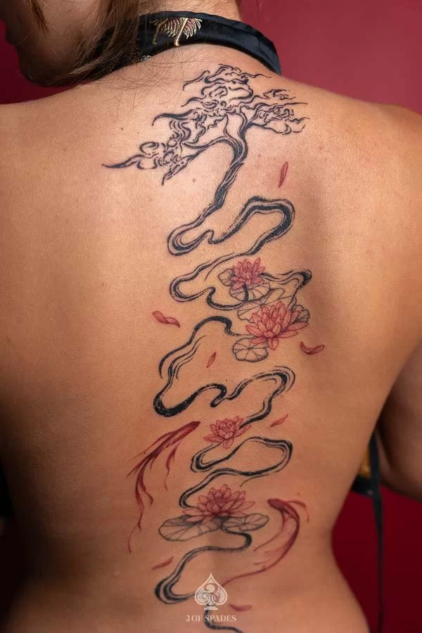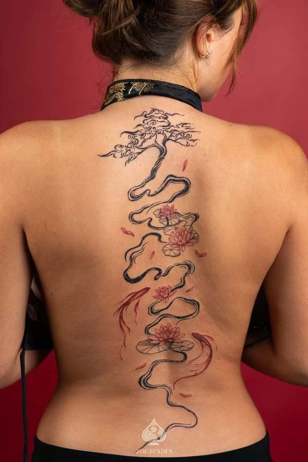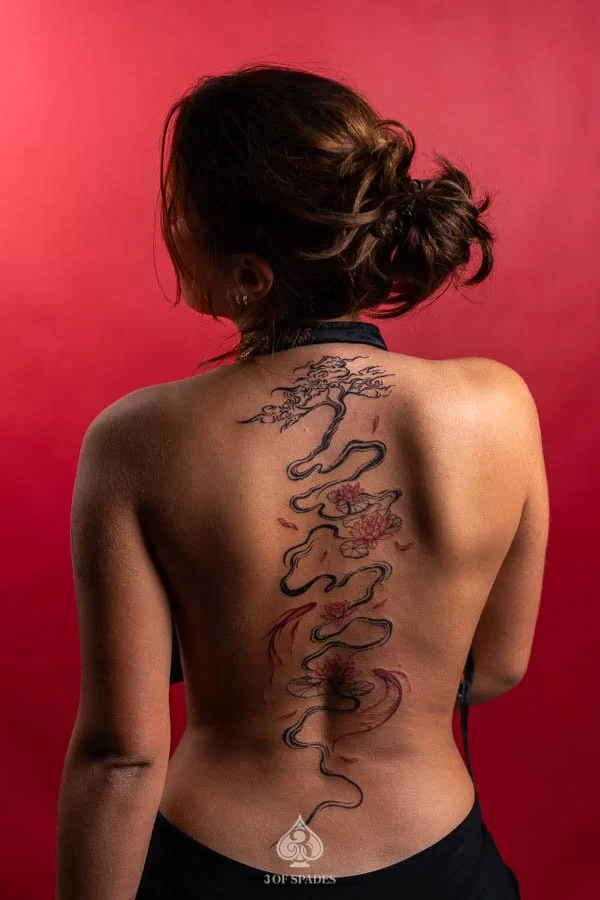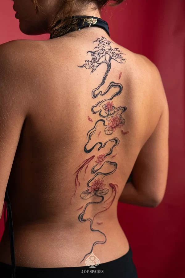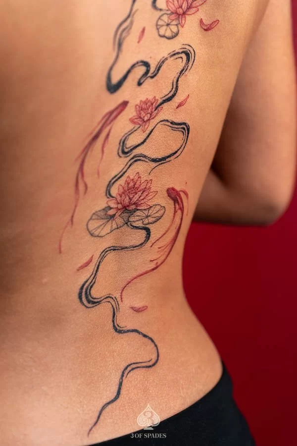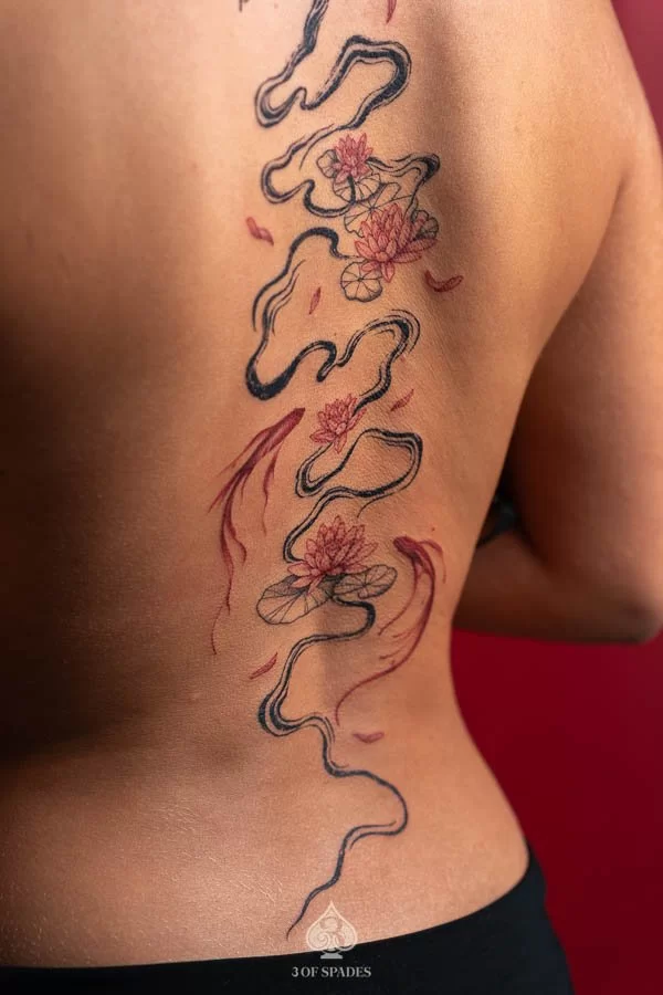 Abstract Back Lotus & Koi Fish