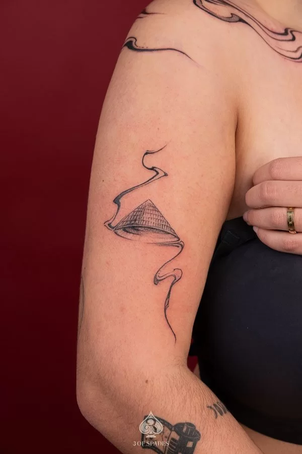 A Abstract Flow Conical tattoo holds cultural and spiritual meaning that transcends simple aesthetics. The specific meaning can vary based on the design elements, style, and personal intention of the wearer. Our artists at 3 Of Spades Tattoo Hanoi can help you incorporate meaningful details into your unique design.