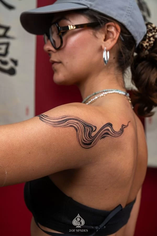 The Abstract Flow Shoulder Tattoo is one of those designs that speaks before you do. At 3 Of Spades Tattoo Hanoi, we have had the privilege of bringing countless Abstract Flow Shoulder designs to life for clients from around the world. Whether you discovered this design while traveling through Hanoi or have been dreaming about it for years, a Abstract Flow Shoulder Tattoo at our studio is more than ink on skin. It is a statement, a memory, a piece of who you are. As we say: Body is my journal, tattoos are my stories.