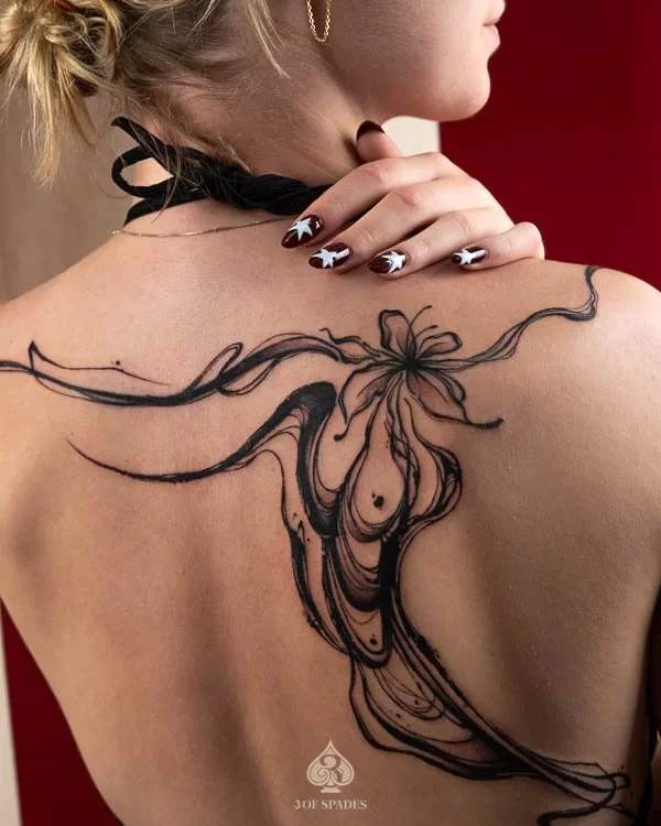 For those who want their Abstract Flower Flow 1 tattoo to command attention, this approach uses strong visual contrast and deliberate composition. The result is a striking piece that translates the Abstract Flower Flow 1 concept into a powerful visual statement.