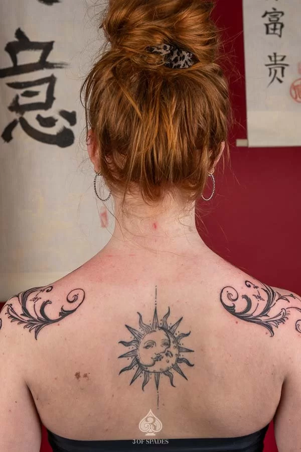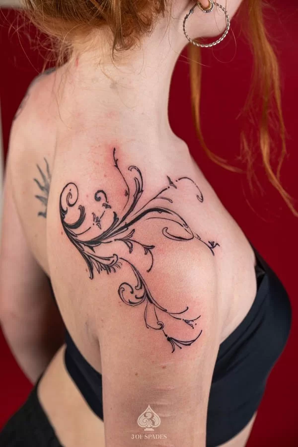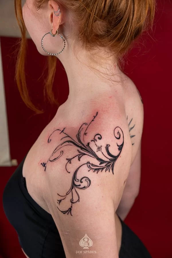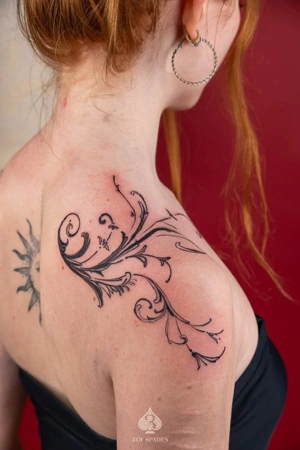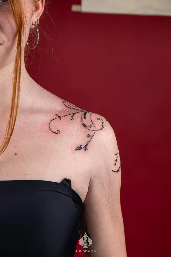 Most tattoos take 2 to 4 weeks for the surface to heal, with full skin recovery taking up to 3 months. We provide detailed aftercare instructions to ensure your Abstract Shoulder Fence Tattoo heals perfectly and retains its vibrancy.