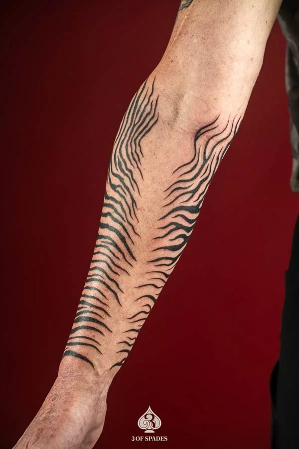 Most tattoos take 2 to 4 weeks for the surface to heal, with full skin recovery taking up to 3 months. We provide detailed aftercare instructions to ensure your Zebra Print Fullarm Tattoo heals perfectly and retains its vibrancy.