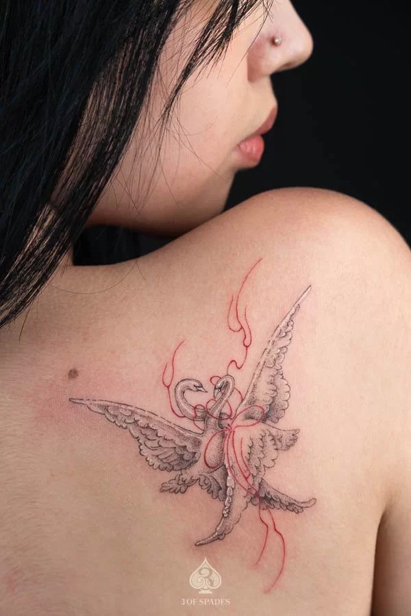 Combining different artistic influences, this approach to the Double Swan Tattoo creates something truly one-of-a-kind. It bridges traditional tattoo aesthetics with contemporary design sensibilities for a result that feels fresh and timeless.