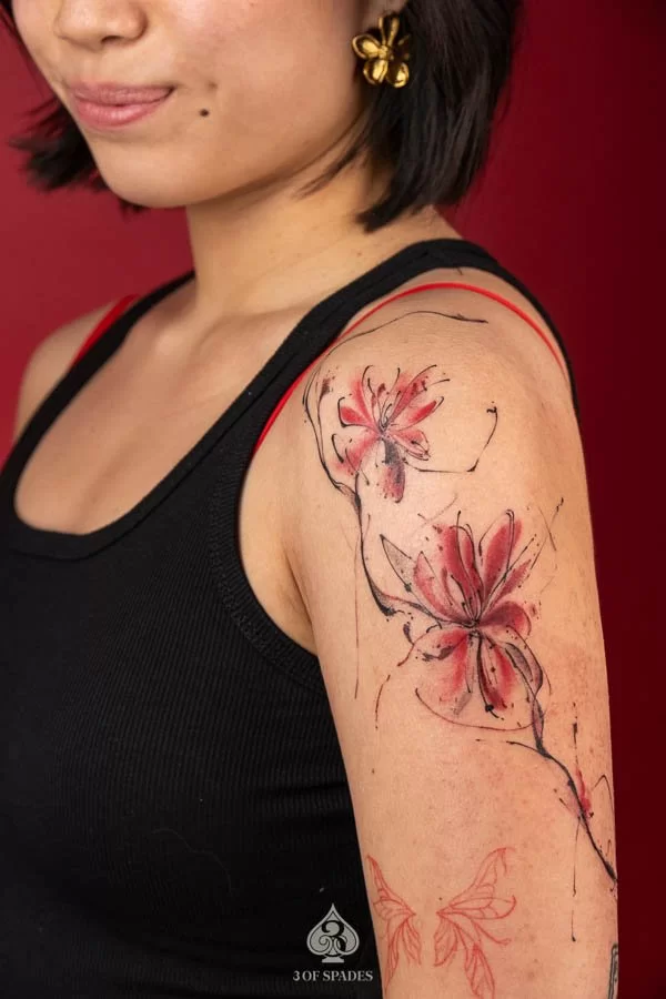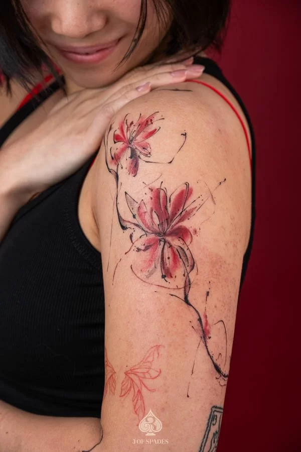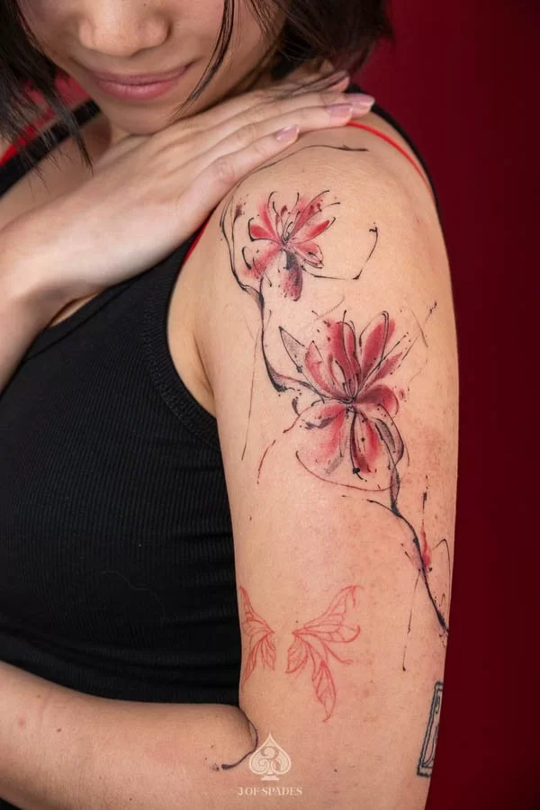 The Bruhstroke Flower Flow 4 Tattoo is one of those designs that speaks before you do. At 3 Of Spades Tattoo Hanoi, we have had the privilege of bringing countless Bruhstroke Flower Flow 4 designs to life for clients from around the world. Whether you discovered this design while traveling through Hanoi or have been dreaming about it for years, a Bruhstroke Flower Flow 4 Tattoo at our studio is more than ink on skin. It is a statement, a memory, a piece of who you are. As we say: Body is my journal, tattoos are my stories.