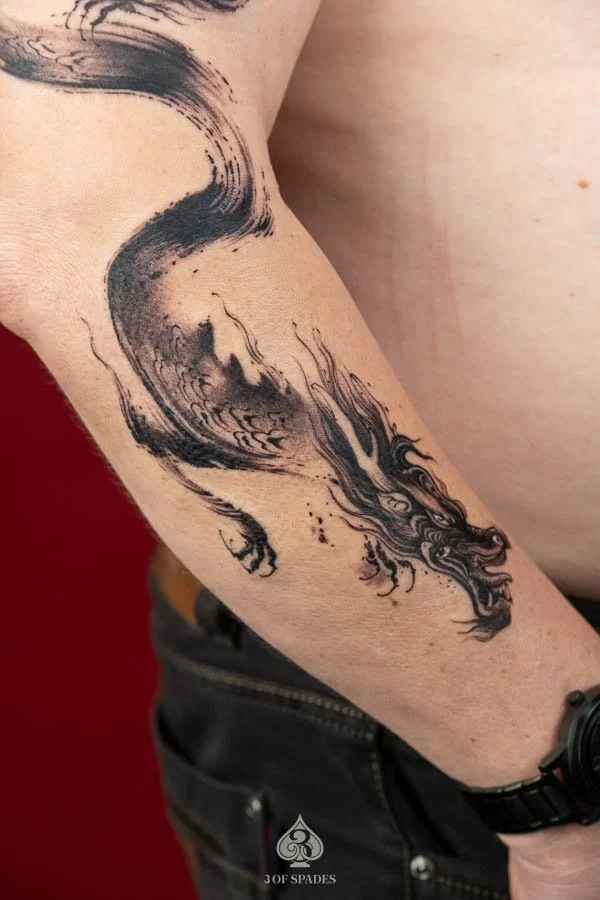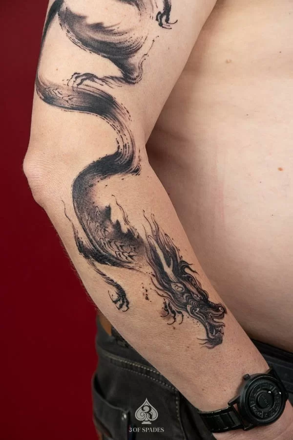 Ready to Book Your Brushstroke Dragon Flow Full Arm Tattoo?