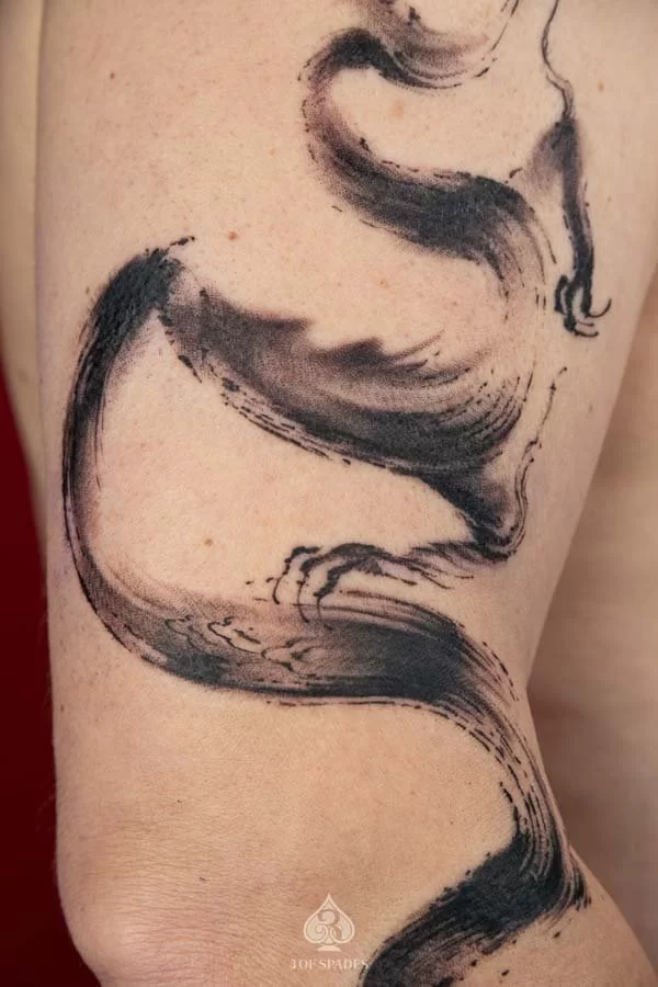 A Brushstroke Dragon Flow Full Arm tattoo embodies a story that words alone cannot capture. The specific meaning can vary based on the design elements, style, and personal intention of the wearer. Our artists at 3 Of Spades Tattoo Hanoi can help you incorporate meaningful details into your unique design.