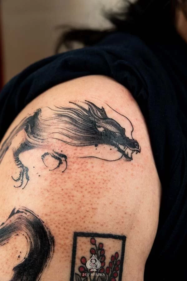 A Brushtroke Dragon 89 tattoo carries deep personal significance for many who choose it. The specific meaning can vary based on the design elements, style, and personal intention of the wearer. Our artists at 3 Of Spades Tattoo Hanoi can help you incorporate meaningful details into your unique design.