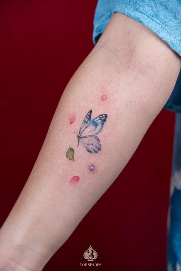 A Colour Butterfly Tattoo tattoo carries deep personal significance for many who choose it. The specific meaning can vary based on the design elements, style, and personal intention of the wearer. Our artists at 3 Of Spades Tattoo Hanoi can help you incorporate meaningful details into your unique design.