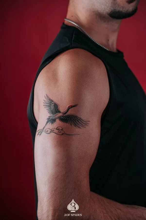 A Crane And Cloud tattoo holds cultural and spiritual meaning that transcends simple aesthetics. The specific meaning can vary based on the design elements, style, and personal intention of the wearer. Our artists at 3 Of Spades Tattoo Hanoi can help you incorporate meaningful details into your unique design.