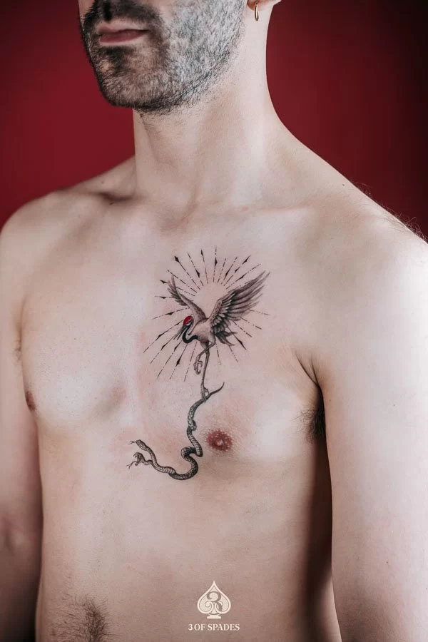 For those who want their Crane Snake Tattoo tattoo to command attention, this approach uses strong visual contrast and deliberate composition. The result is a striking piece that translates the Crane Snake Tattoo concept into a powerful visual statement.