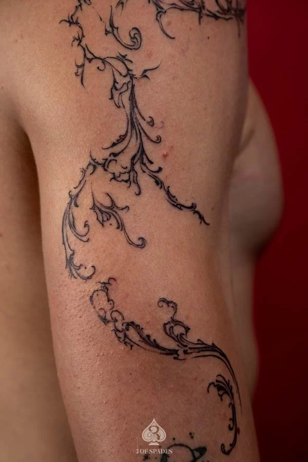 - Artists specialize in fine line and abstract flow tattoos