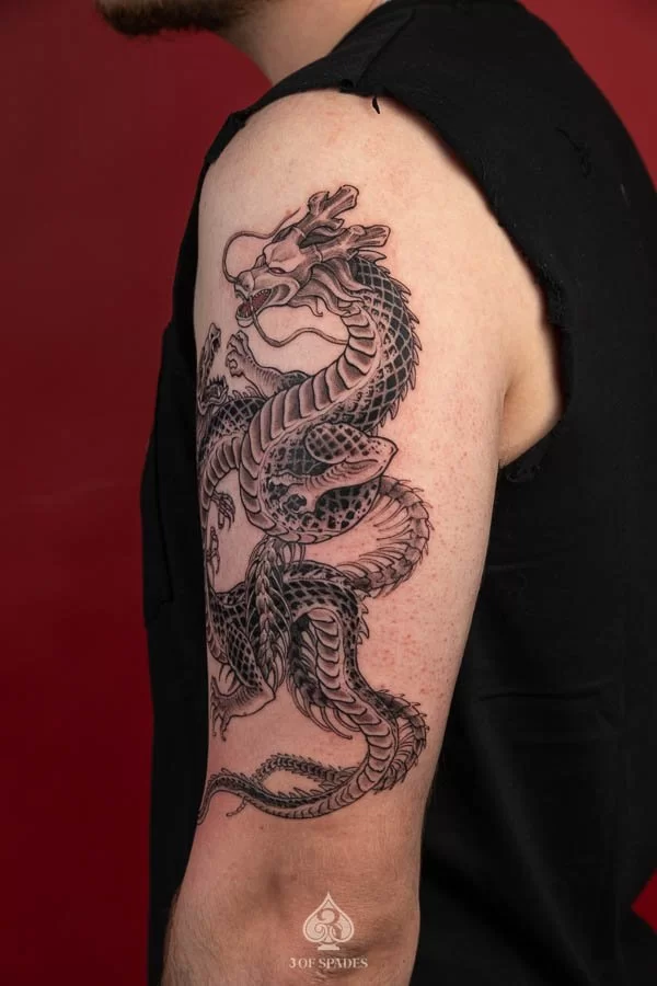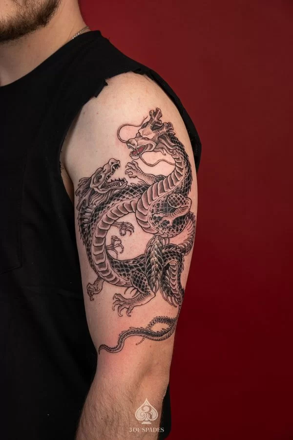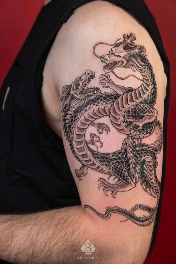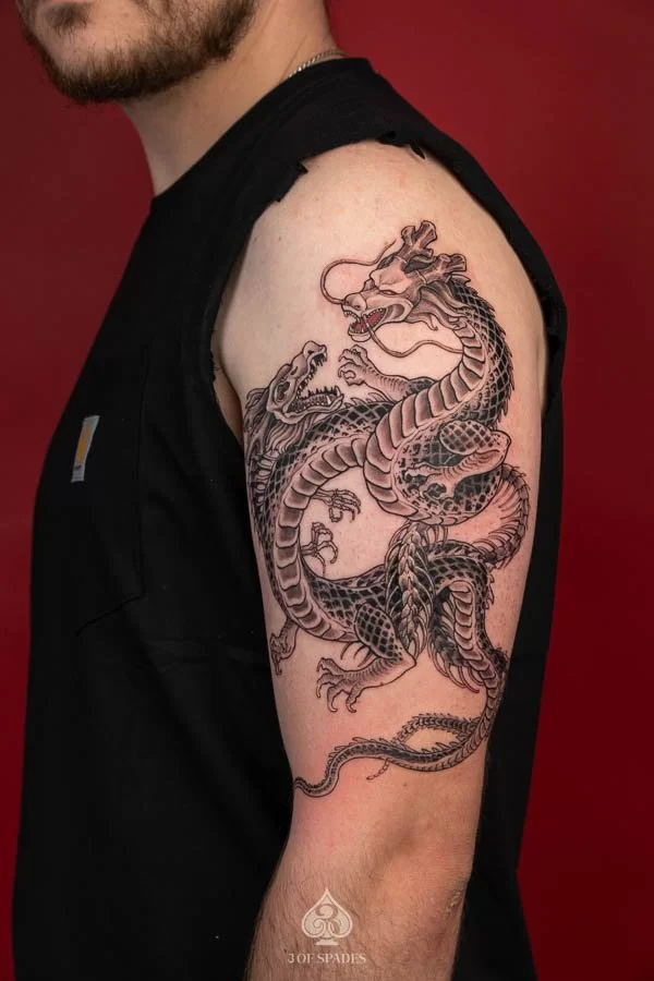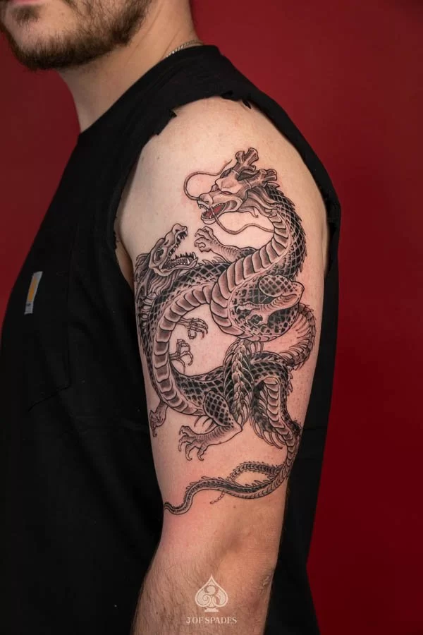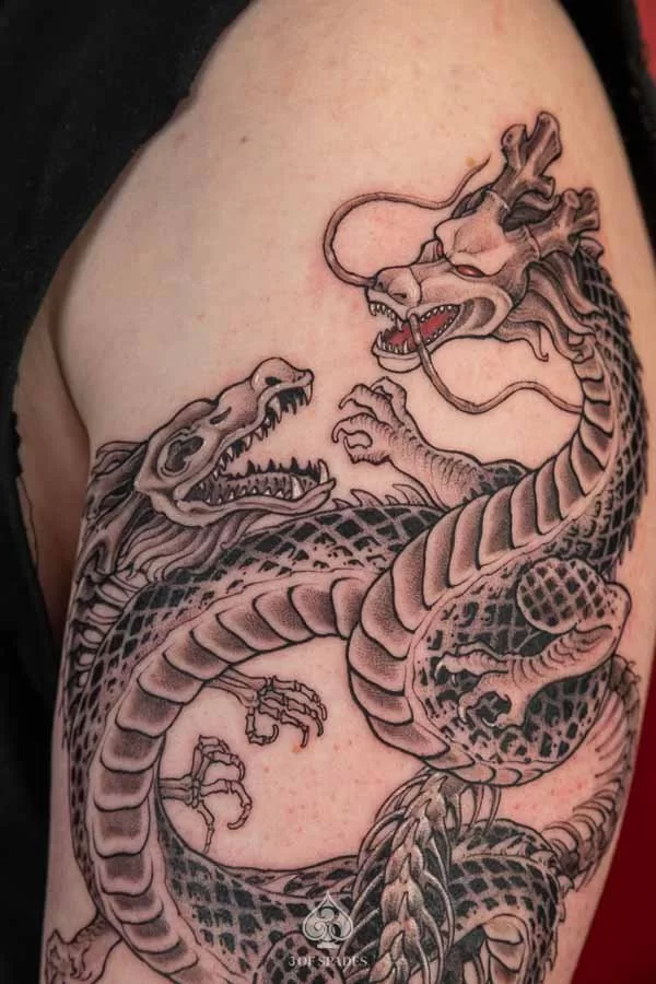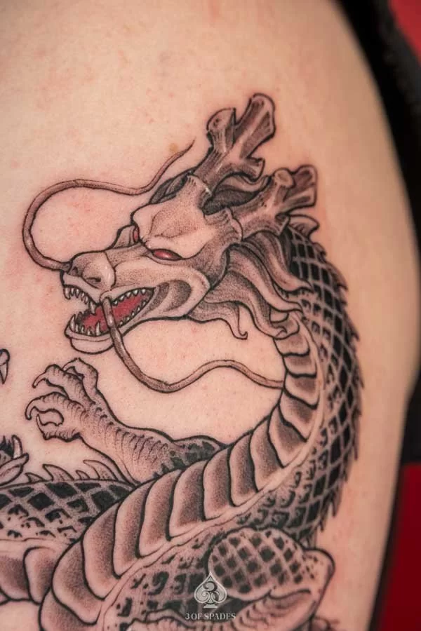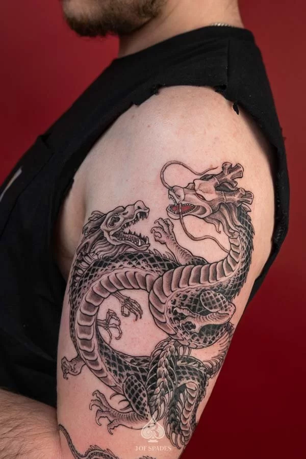 Absolutely. At 3 Of Spades Tattoo Hanoi, every tattoo starts as a custom design. We do not use generic flash art unless specifically requested. Your 2 Dragonballz Skeleton Dragon tattoo will be a one-of-a-kind piece created specifically for you.