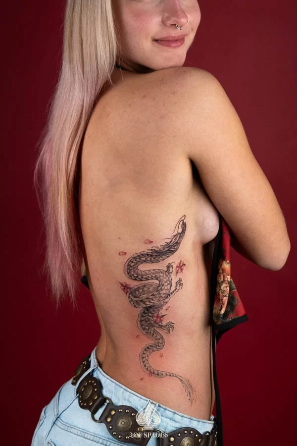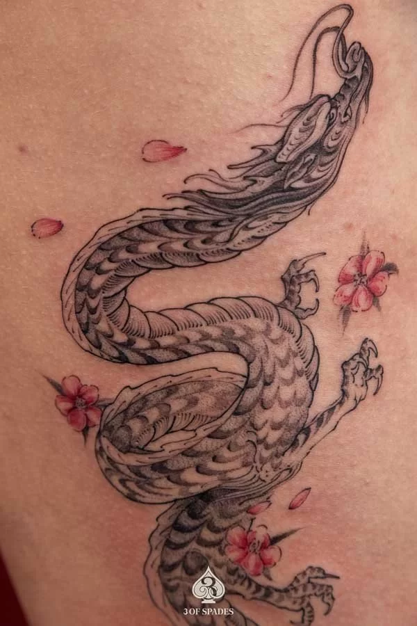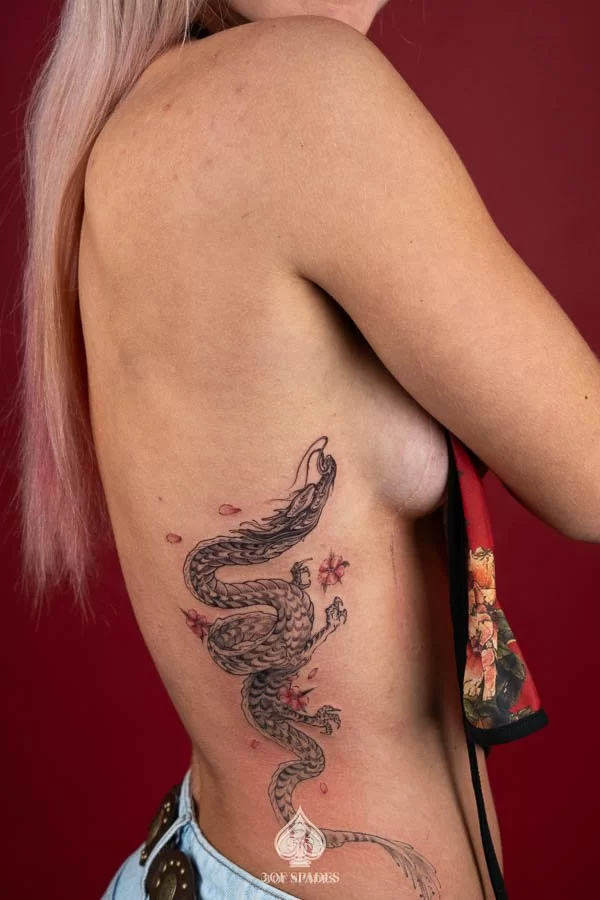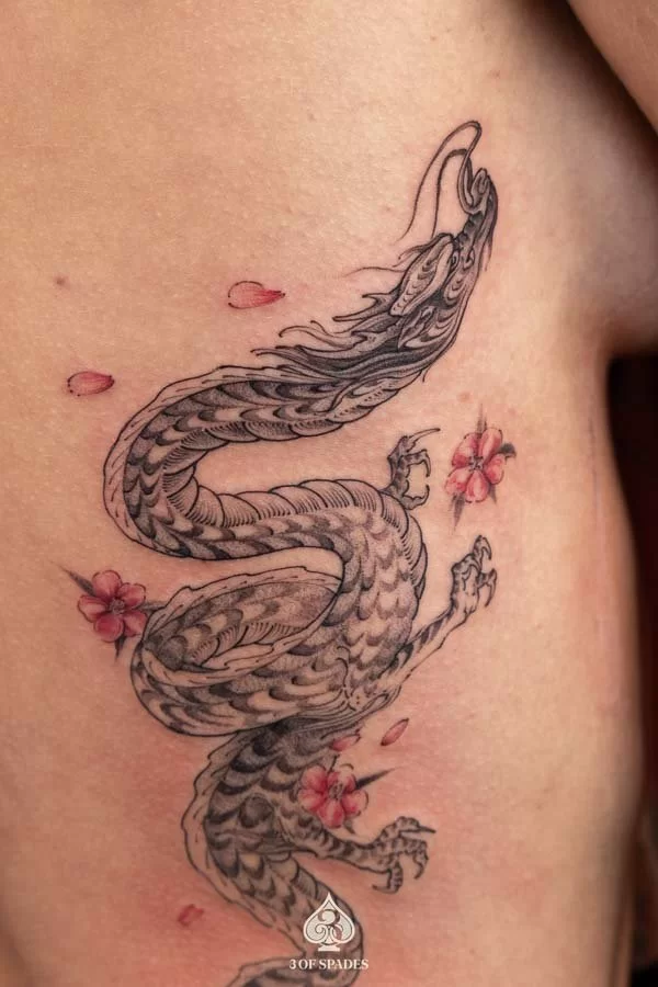 A Dragon Ribbs 5 tattoo holds cultural and spiritual meaning that transcends simple aesthetics. The specific meaning can vary based on the design elements, style, and personal intention of the wearer. Our artists at 3 Of Spades Tattoo Hanoi can help you incorporate meaningful details into your unique design.