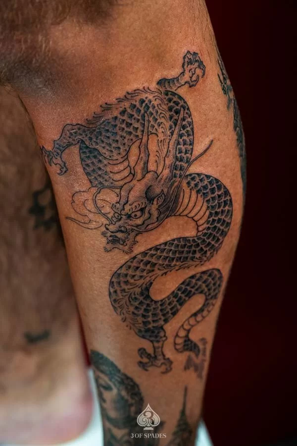 A Dragon Tattoo Shin tattoo carries deep personal significance for many who choose it. The specific meaning can vary based on the design elements, style, and personal intention of the wearer. Our artists at 3 Of Spades Tattoo Hanoi can help you incorporate meaningful details into your unique design.