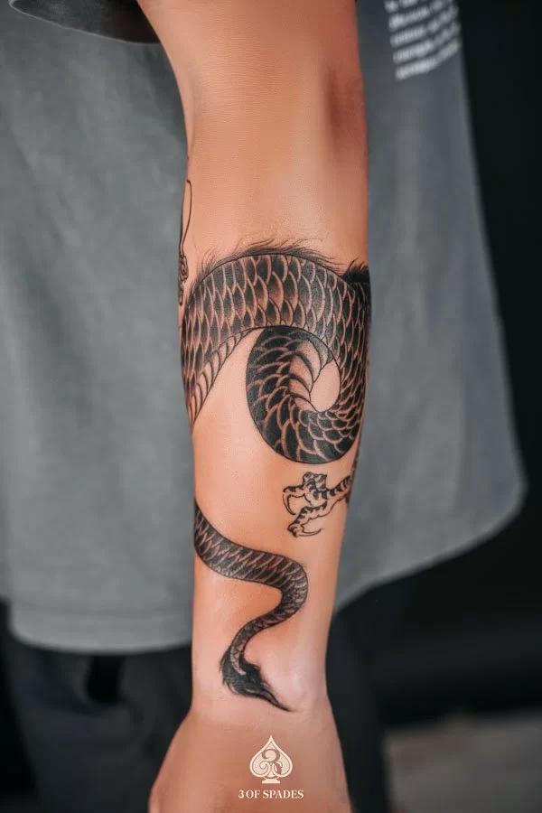 The Freehand Brush Dragon Tattoo is one of those designs that speaks before you do. At 3 Of Spades Tattoo Hanoi, we have had the privilege of bringing countless Freehand Brush Dragon designs to life for clients from around the world. Whether you discovered this design while traveling through Hanoi or have been dreaming about it for years, a Freehand Brush Dragon Tattoo at our studio is more than ink on skin. It is a statement, a memory, a piece of who you are. As we say: Body is my journal, tattoos are my stories.