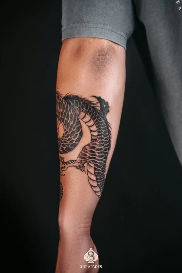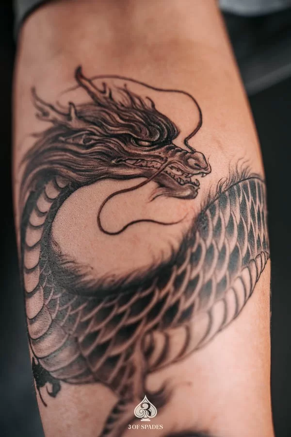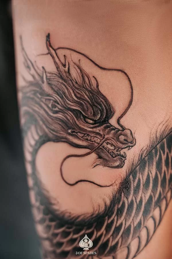 A Freehand Brush Dragon tattoo embodies a story that words alone cannot capture. The specific meaning can vary based on the design elements, style, and personal intention of the wearer. Our artists at 3 Of Spades Tattoo Hanoi can help you incorporate meaningful details into your unique design.