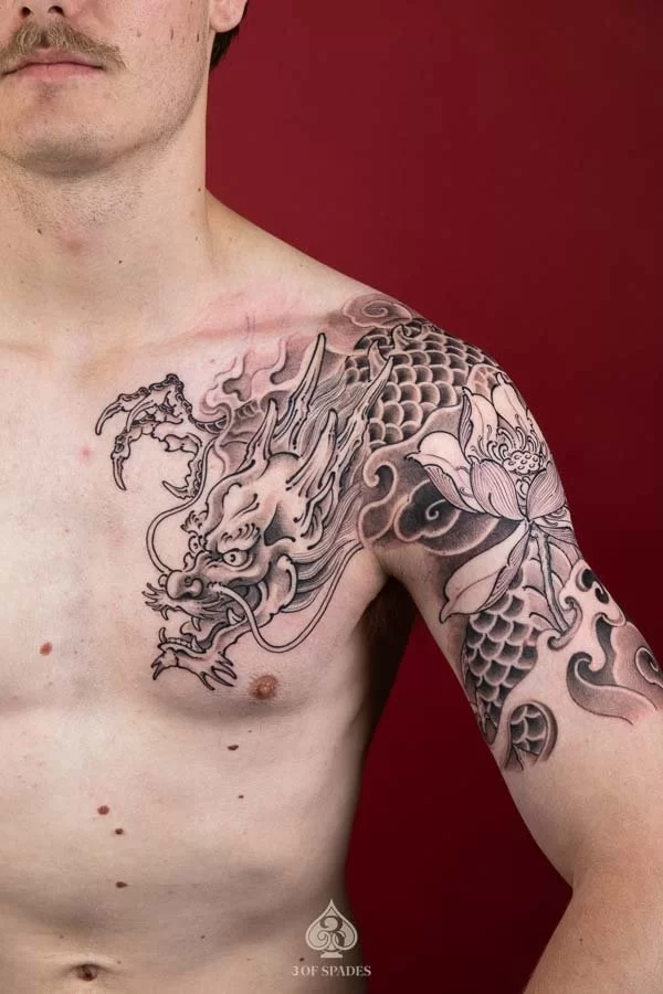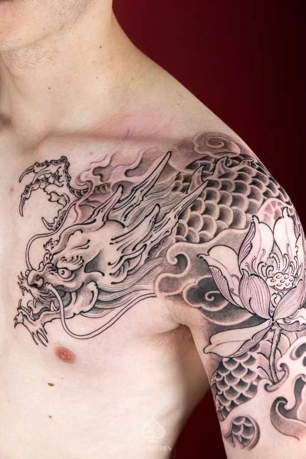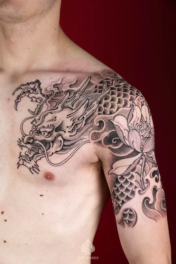 For those who want their Japanese Dragon Lotus tattoo to command attention, this approach uses strong visual contrast and deliberate composition. The result is a striking piece that translates the Japanese Dragon Lotus concept into a powerful visual statement.