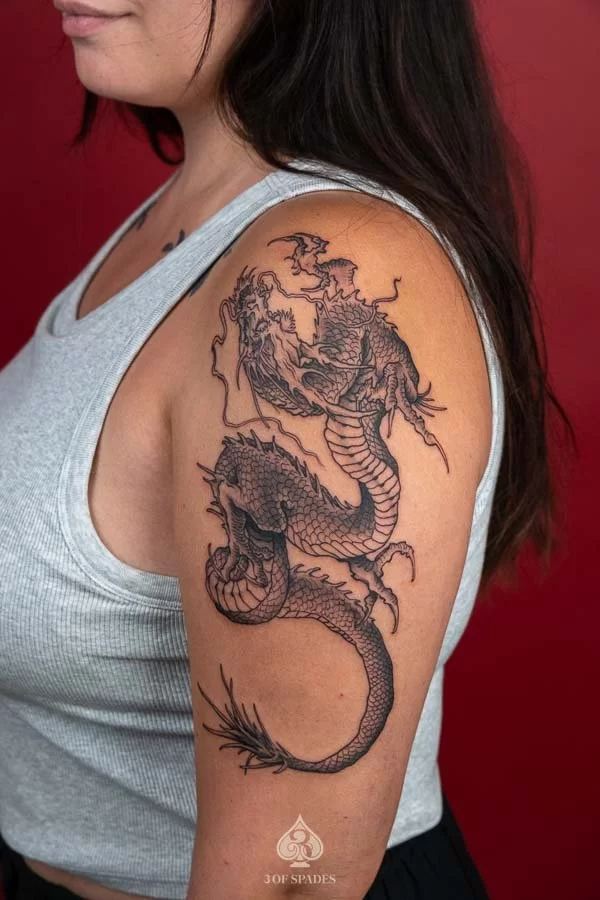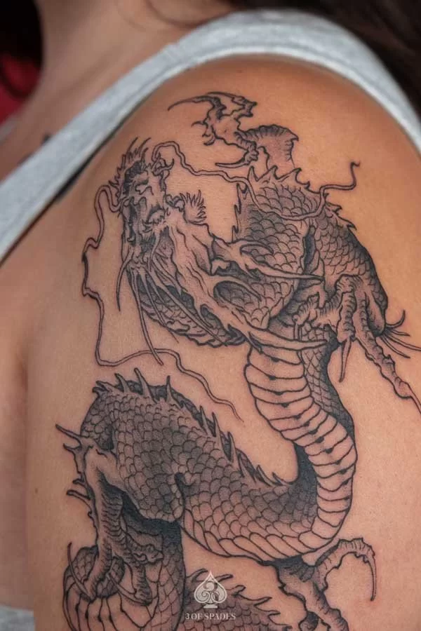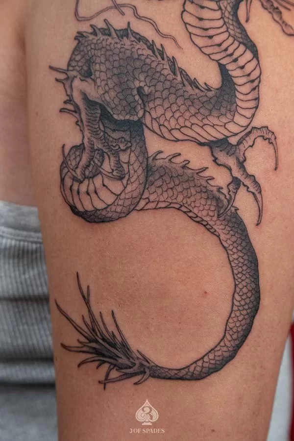 A Japnaese Dragon Tattoo 2 tattoo embodies a story that words alone cannot capture. The specific meaning can vary based on the design elements, style, and personal intention of the wearer. Our artists at 3 Of Spades Tattoo Hanoi can help you incorporate meaningful details into your unique design.