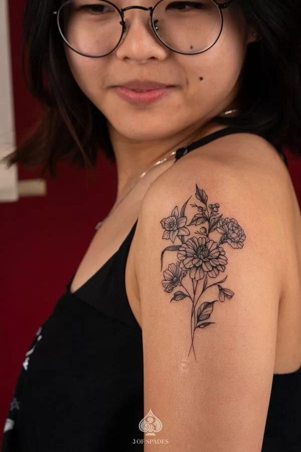 The Flower Bouquet Tattoo design represents a powerful connection between inner emotion and outward expression. In the world of tattoo art, Flower Bouquet Tattoo imagery draws from a rich visual language that resonates across cultures and personal experiences. Many of our clients at 3 Of Spades Tattoo Hanoi choose this design because it reflects something deeply personal, whether it is a milestone, a memory, or a belief they carry with them every day.