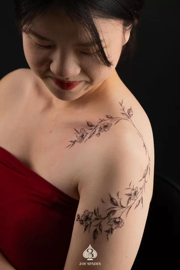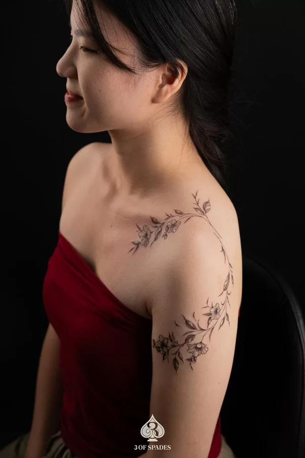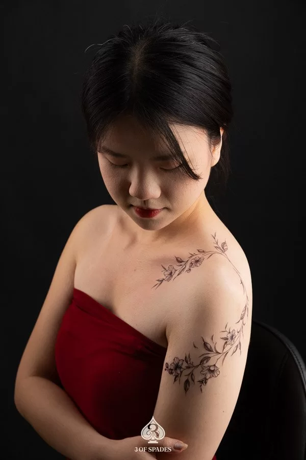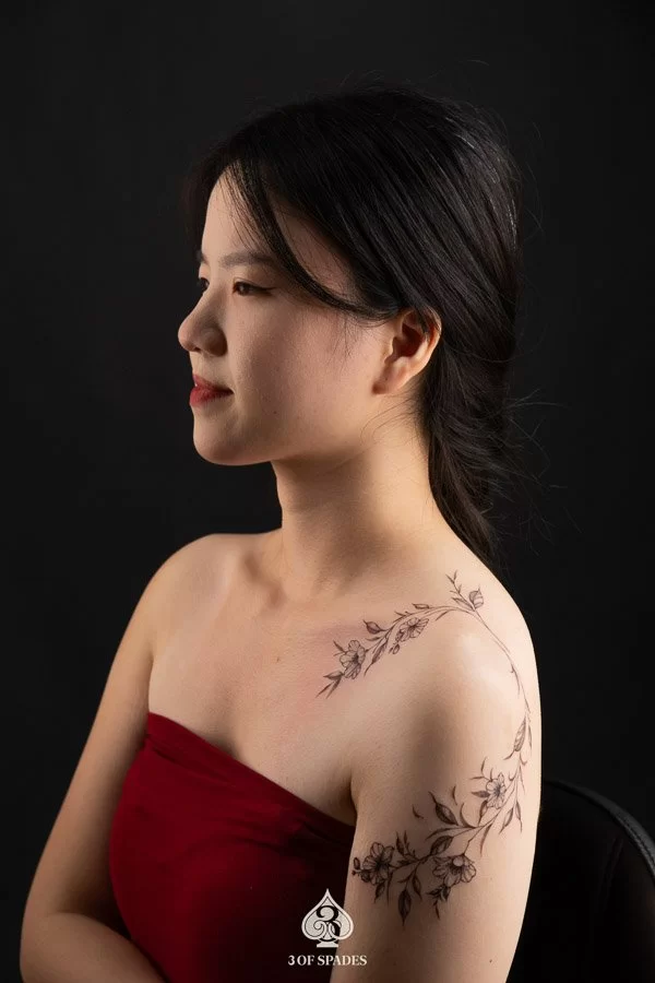 Your Flower Vine Tattoo journey starts with a conversation. Whether you have a clear vision or just the beginning of an idea, our artists at 3 Of Spades Tattoo Hanoi are ready to collaborate with you. We believe that Body is my journal, tattoos are my stories, and we are here to help you write your next chapter.