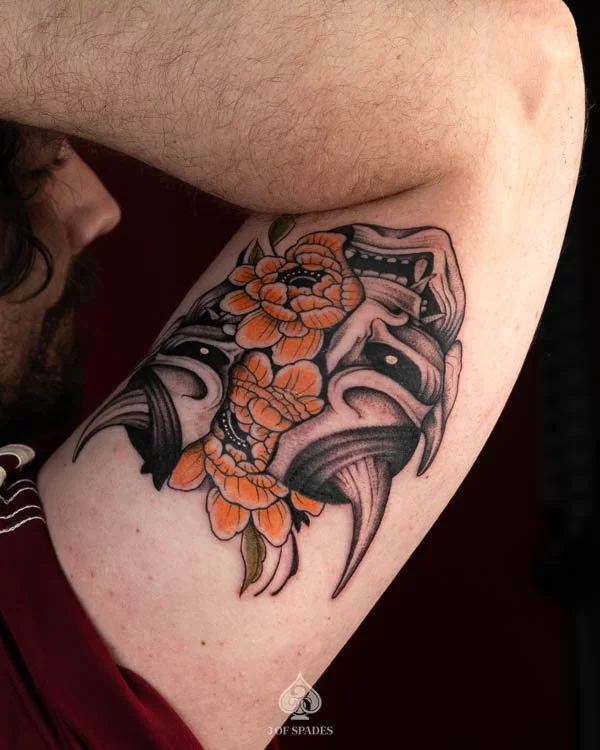 A Hanya Mask Japanese tattoo carries deep personal significance for many who choose it. The specific meaning can vary based on the design elements, style, and personal intention of the wearer. Our artists at 3 Of Spades Tattoo Hanoi can help you incorporate meaningful details into your unique design.