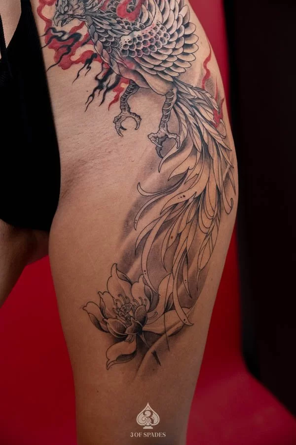 A Japanese Phoenix Tattoo tattoo symbolizes transformation, personal growth, and the courage to embrace change. The specific meaning can vary based on the design elements, style, and personal intention of the wearer. Our artists at 3 Of Spades Tattoo Hanoi can help you incorporate meaningful details into your unique design.