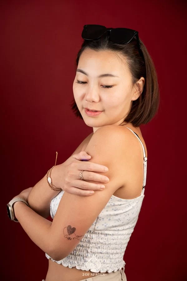 Book your free consultation today and let us bring your Matched Finger Print Heart tattoo to life in the heart of Hanoi.