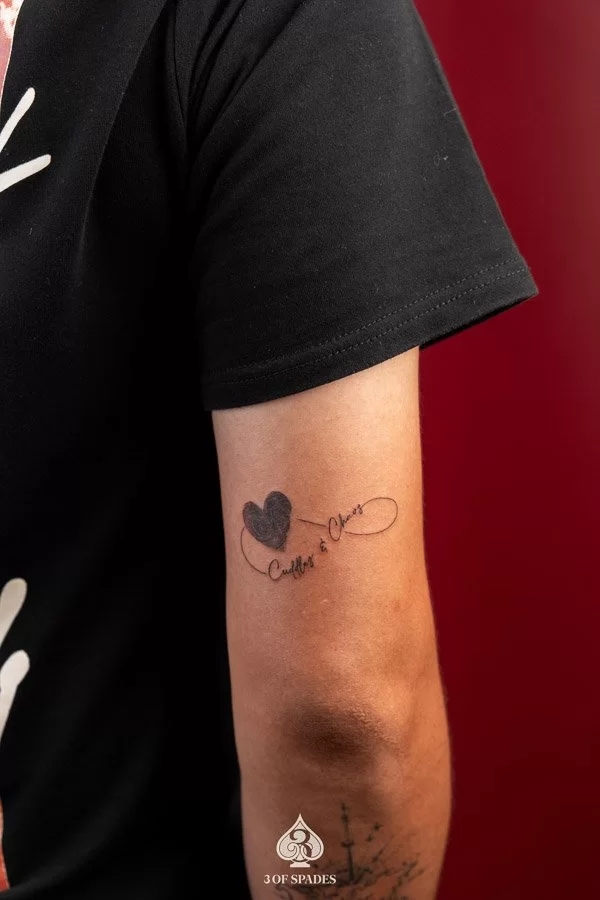 Most tattoos take 2 to 4 weeks for the surface to heal, with full skin recovery taking up to 3 months. We provide detailed aftercare instructions to ensure your Matched Finger Print Heart Tattoo heals perfectly and retains its vibrancy.