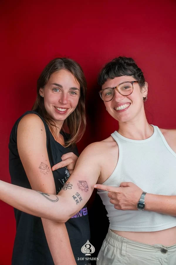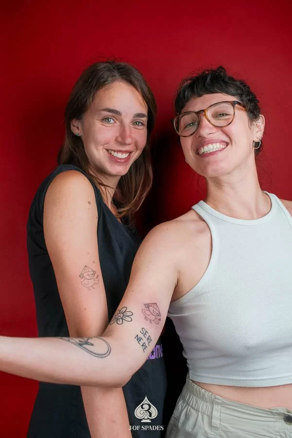 Most tattoos take 2 to 4 weeks for the surface to heal, with full skin recovery taking up to 3 months. We provide detailed aftercare instructions to ensure your Matched Silly Duck Tattoo heals perfectly and retains its vibrancy.