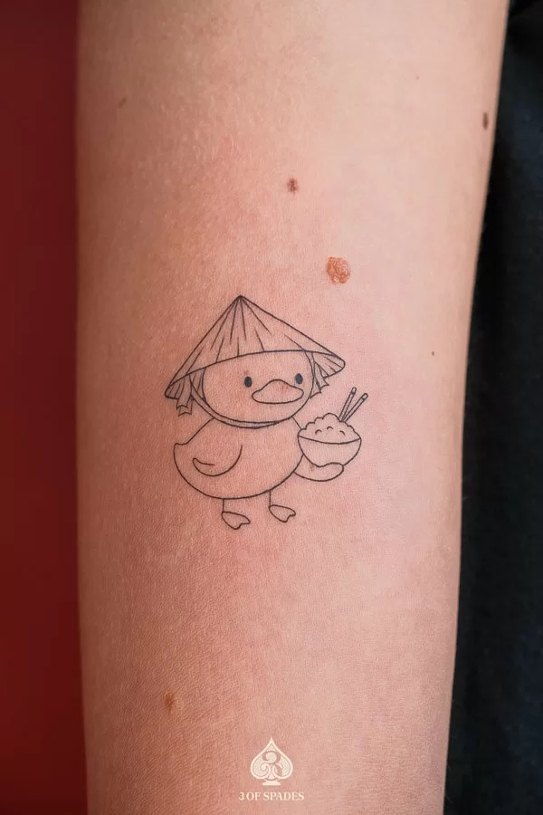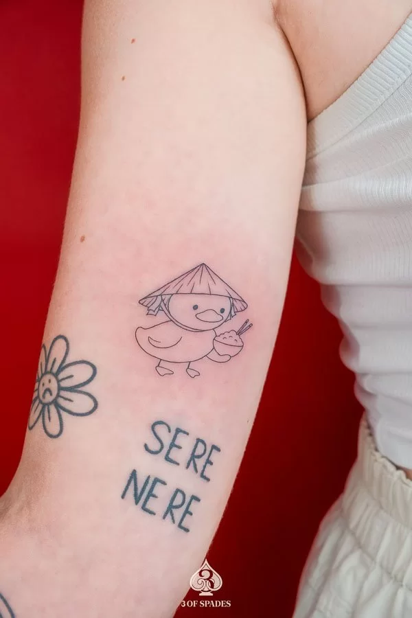 The Matched Silly Duck Tattoo is one of those designs that speaks before you do. At 3 Of Spades Tattoo Hanoi, we have had the privilege of bringing countless Matched Silly Duck designs to life for clients from around the world. Whether you discovered this design while traveling through Hanoi or have been dreaming about it for years, a Matched Silly Duck Tattoo at our studio is more than ink on skin. It is a statement, a memory, a piece of who you are. As we say: Body is my journal, tattoos are my stories.