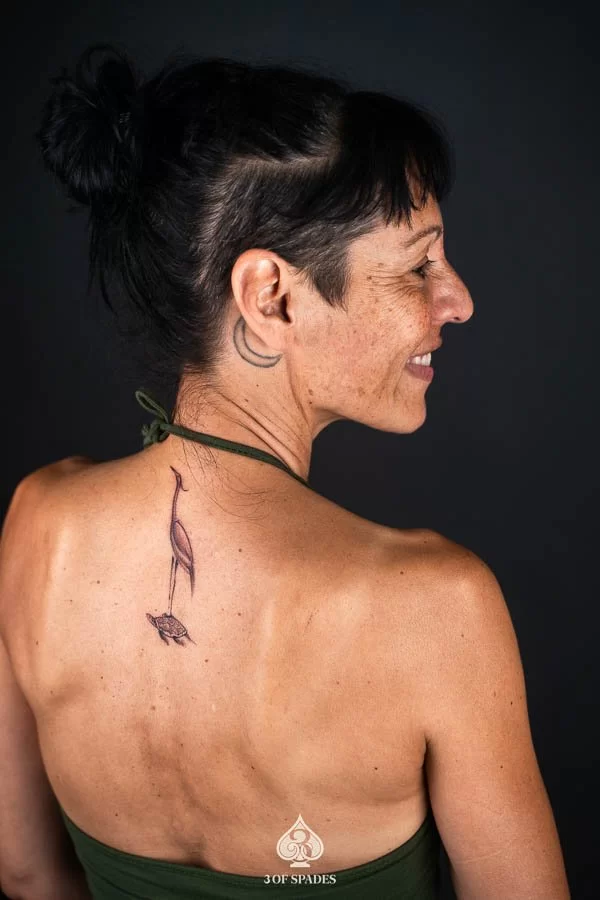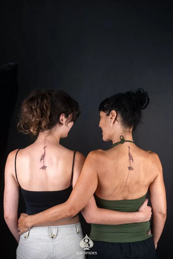 Most tattoos take 2 to 4 weeks for the surface to heal, with full skin recovery taking up to 3 months. We provide detailed aftercare instructions to ensure your Matched Turtle And Crane Tattoo heals perfectly and retains its vibrancy.