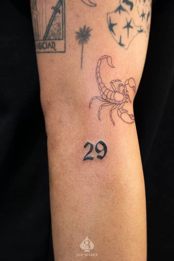 Most tattoos take 2 to 4 weeks for the surface to heal, with full skin recovery taking up to 3 months. We provide detailed aftercare instructions to ensure your Fineline Scorpion Tattoo heals perfectly and retains its vibrancy.