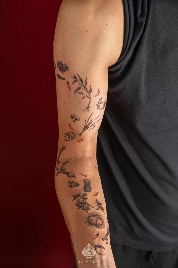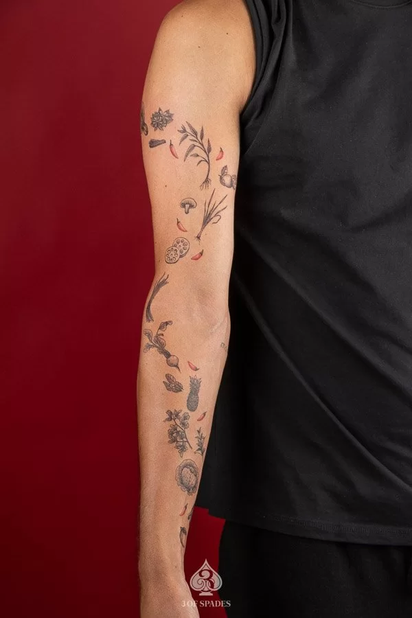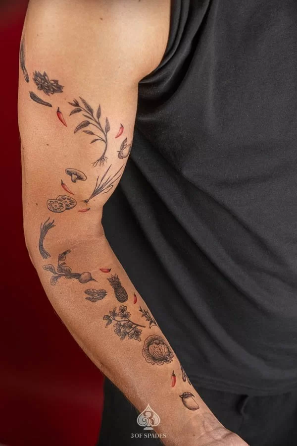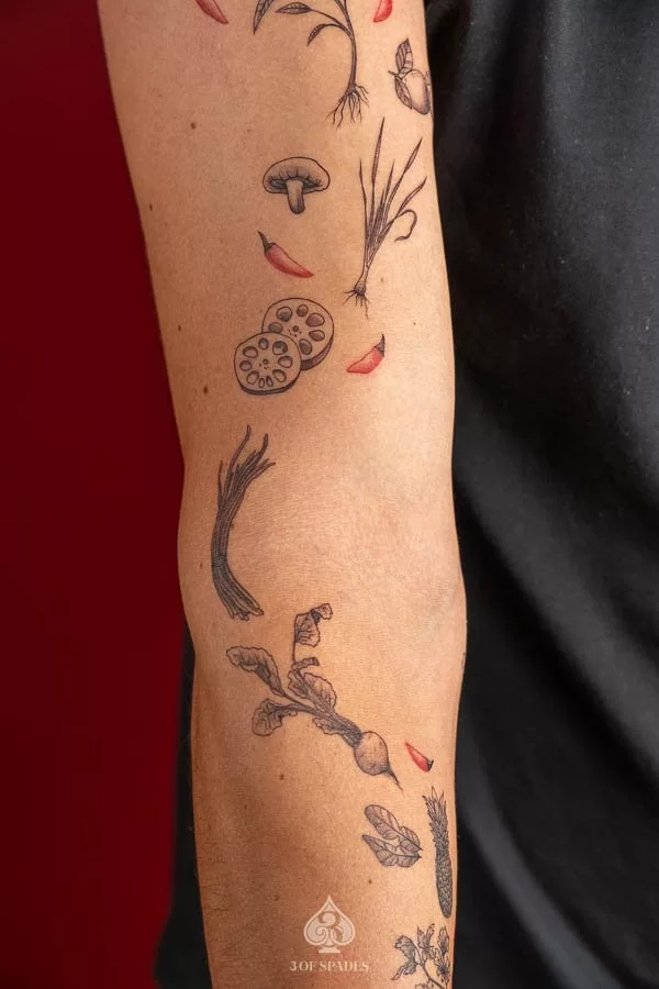 Your Mini Food Ingredient Tattoo journey starts with a conversation. Whether you have a clear vision or just the beginning of an idea, our artists at 3 Of Spades Tattoo Hanoi are ready to collaborate with you. We believe that Body is my journal, tattoos are my stories, and we are here to help you write your next chapter.