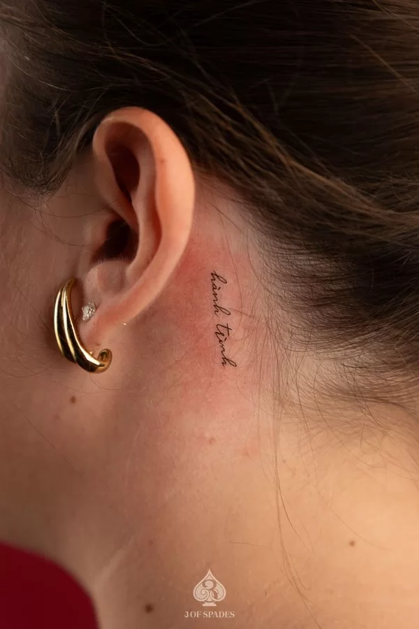 A Mini Words tattoo embodies a story that words alone cannot capture. The specific meaning can vary based on the design elements, style, and personal intention of the wearer. Our artists at 3 Of Spades Tattoo Hanoi can help you incorporate meaningful details into your unique design.