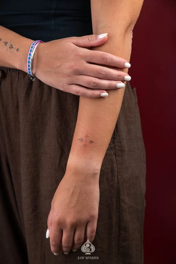 The Mini Ornamental 4 design symbolizes transformation, personal growth, and the courage to embrace change. In the world of tattoo art, Mini Ornamental 4 imagery draws from a rich visual language that resonates across cultures and personal experiences. Many of our clients at 3 Of Spades Tattoo Hanoi choose this design because it reflects something deeply personal, whether it is a milestone, a memory, or a belief they carry with them every day.