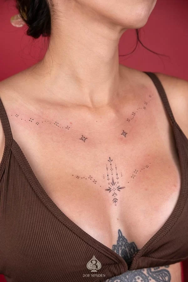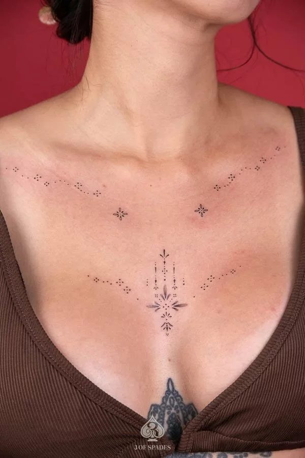 Your Ornamental Woman Chest Tattoo journey starts with a conversation. Whether you have a clear vision or just the beginning of an idea, our artists at 3 Of Spades Tattoo Hanoi are ready to collaborate with you. We believe that Body is my journal, tattoos are my stories, and we are here to help you write your next chapter.
