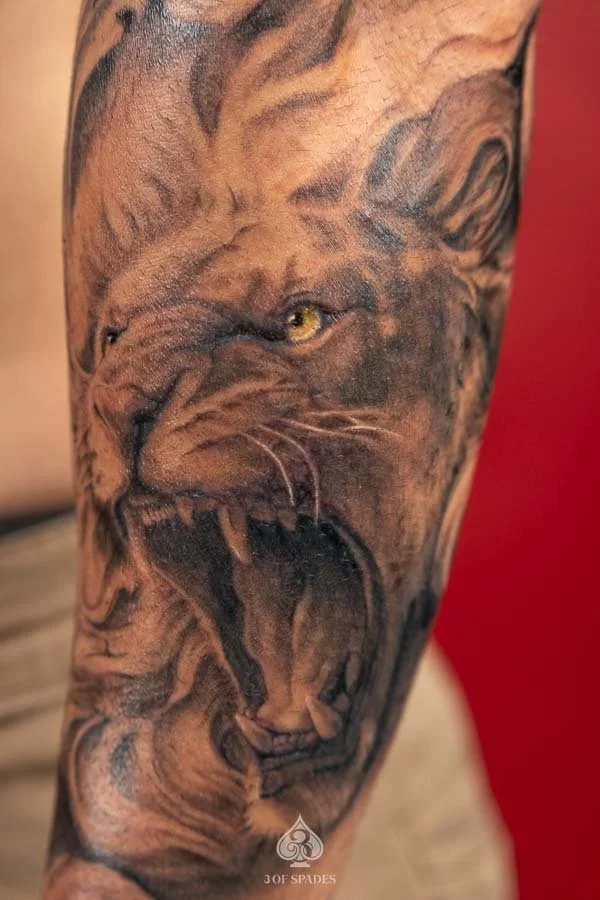 Most tattoos take 2 to 4 weeks for the surface to heal, with full skin recovery taking up to 3 months. We provide detailed aftercare instructions to ensure your Lion Full Arm Realism Tattoo heals perfectly and retains its vibrancy.