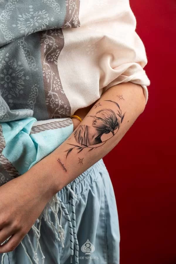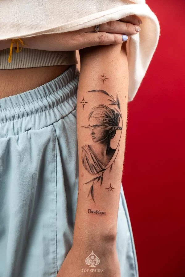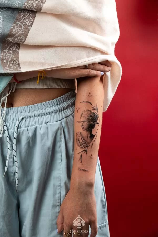 This interpretation brings a painterly quality to the Realism Statue Tattoo, blending artistic technique with tattoo craft. It creates a unique piece that feels both spontaneous and carefully considered.