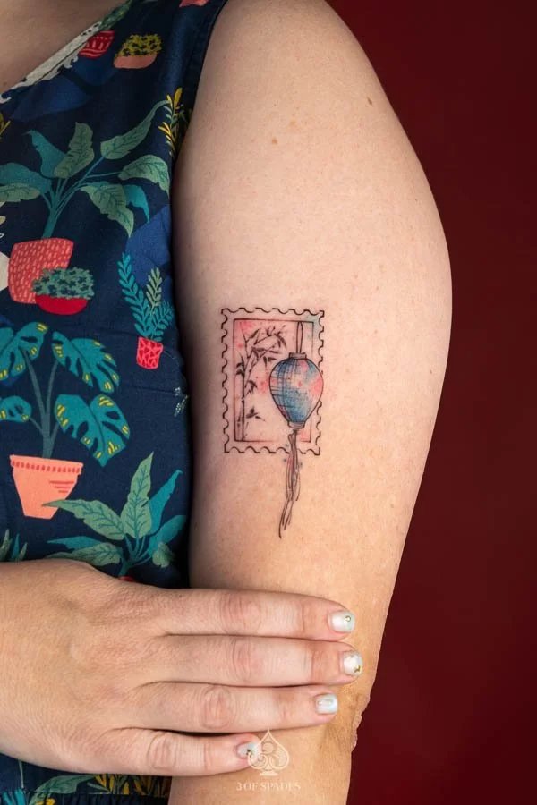 Your Colour Lantern Stamp Tattoo journey starts with a conversation. Whether you have a clear vision or just the beginning of an idea, our artists at 3 Of Spades Tattoo Hanoi are ready to collaborate with you. We believe that Body is my journal, tattoos are my stories, and we are here to help you write your next chapter.