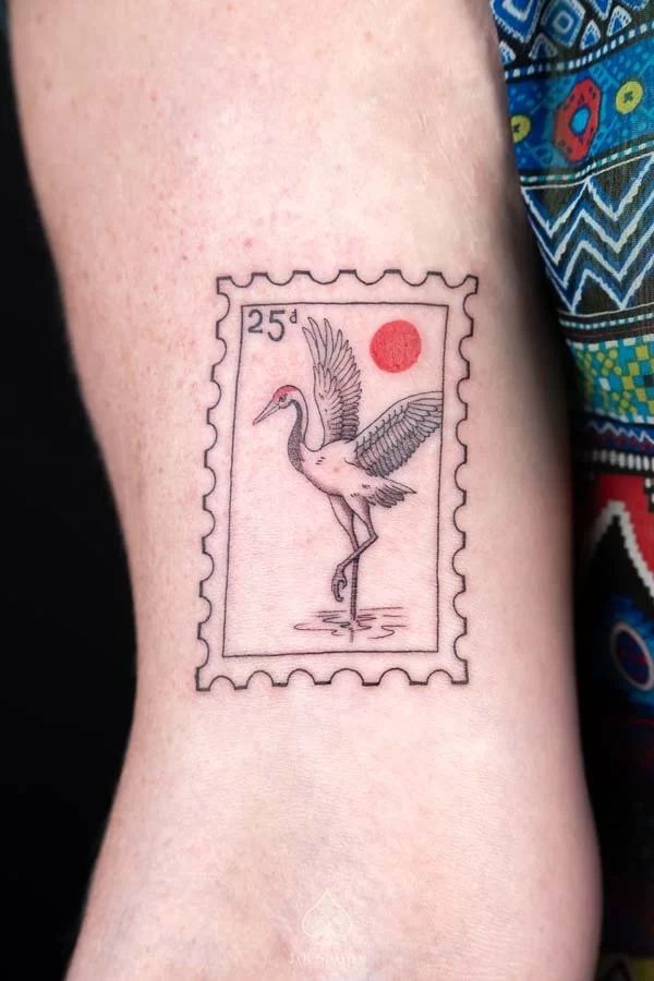 Book your free consultation today and let us bring your Crane Stamps Sun tattoo to life in the heart of Hanoi.