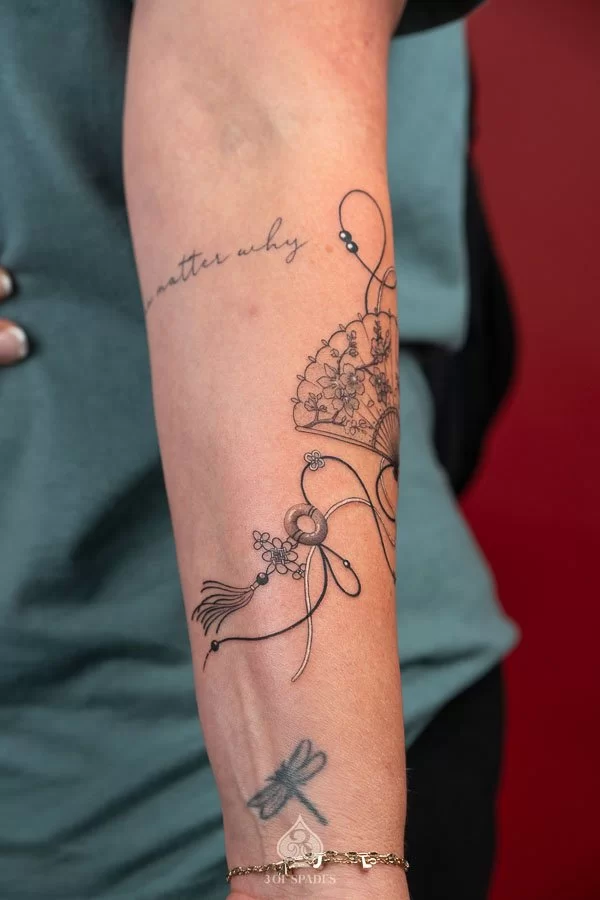 A Flower Fan 5 tattoo embodies a story that words alone cannot capture. The specific meaning can vary based on the design elements, style, and personal intention of the wearer. Our artists at 3 Of Spades Tattoo Hanoi can help you incorporate meaningful details into your unique design.