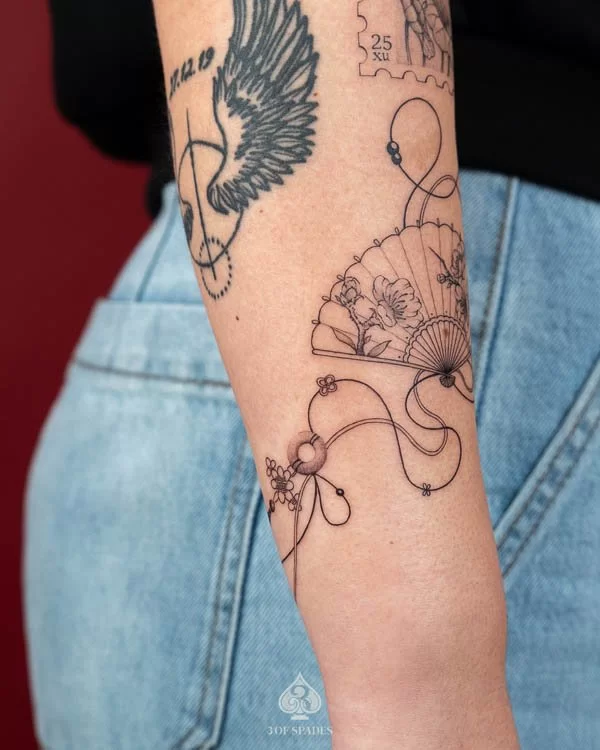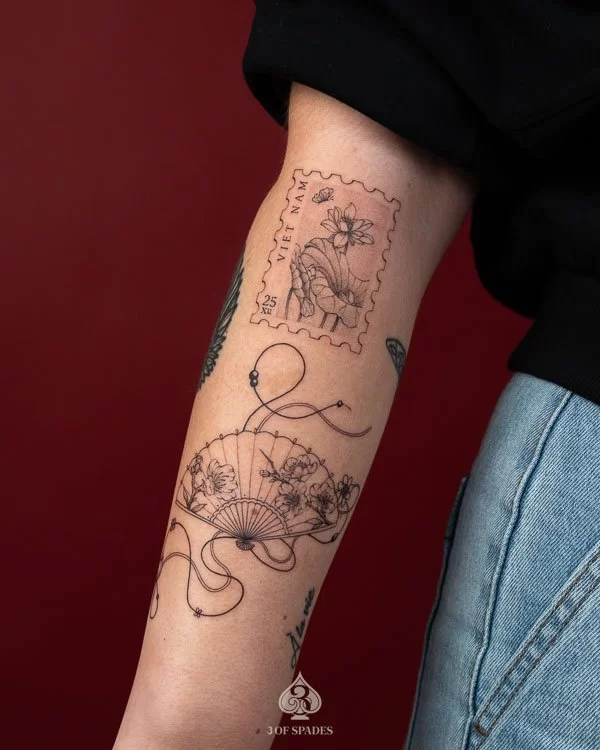 A Flower Fan 56 tattoo carries deep personal significance for many who choose it. The specific meaning can vary based on the design elements, style, and personal intention of the wearer. Our artists at 3 Of Spades Tattoo Hanoi can help you incorporate meaningful details into your unique design.