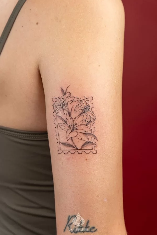A Flower Stamp Inspired tattoo embodies a story that words alone cannot capture. The specific meaning can vary based on the design elements, style, and personal intention of the wearer. Our artists at 3 Of Spades Tattoo Hanoi can help you incorporate meaningful details into your unique design.
