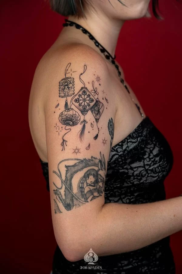 The Multiple Lanterns Tattoo is a beautiful and symbolic design that represents light through different stages of life. At 3 Of Spades Tattoo Hanoi, lantern tattoos are especially meaningful for travelers and those connected to Asian culture—each lantern carrying its own story, yet flowing together as one composition. As we say: Body is my journal, tattoos are my stories.