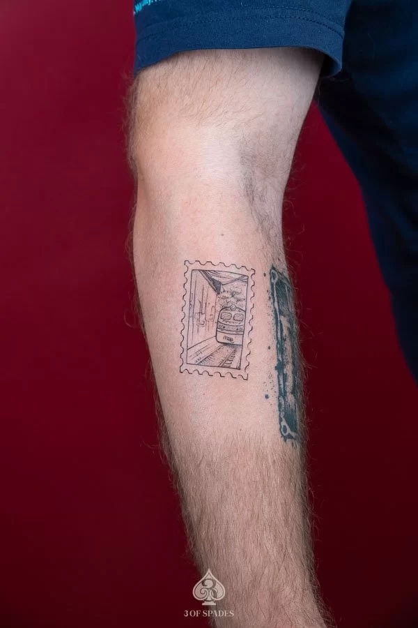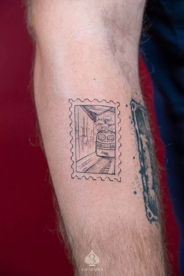 Combining different artistic influences, this approach to the Train Street Stamps Tattoo creates something truly one-of-a-kind. It bridges traditional tattoo aesthetics with contemporary design sensibilities for a result that feels fresh and timeless.