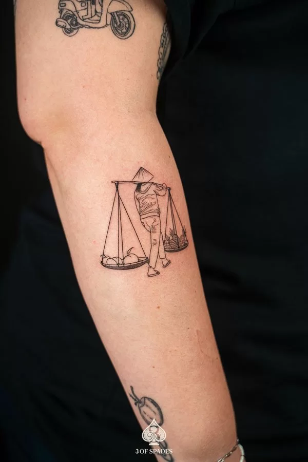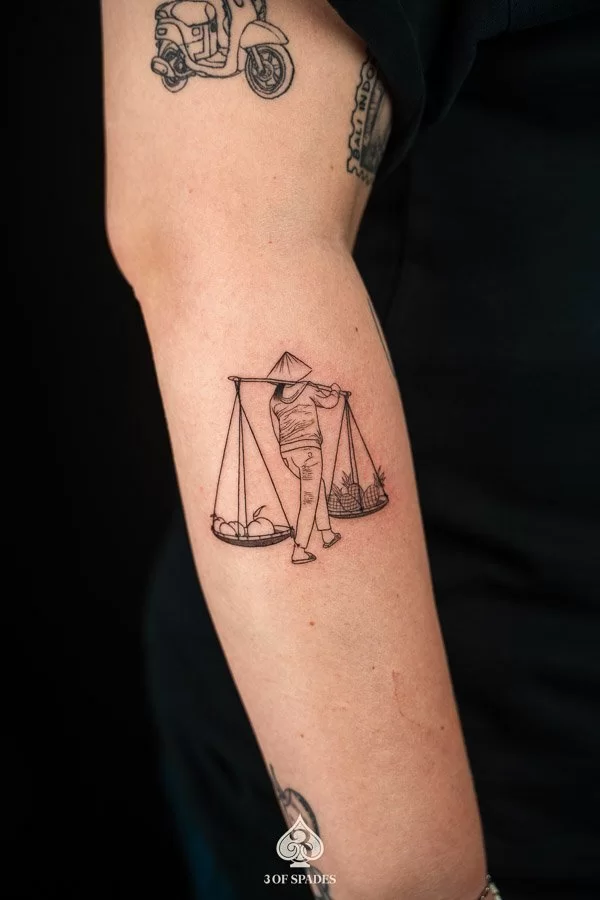 The Ganh Hang Rong Tattoo is one of those designs that speaks before you do. At 3 Of Spades Tattoo Hanoi, we have had the privilege of bringing countless Ganh Hang Rong designs to life for clients from around the world. Whether you discovered this design while traveling through Hanoi or have been dreaming about it for years, a Ganh Hang Rong Tattoo at our studio is more than ink on skin. It is a statement, a memory, a piece of who you are. As we say: Body is my journal, tattoos are my stories.