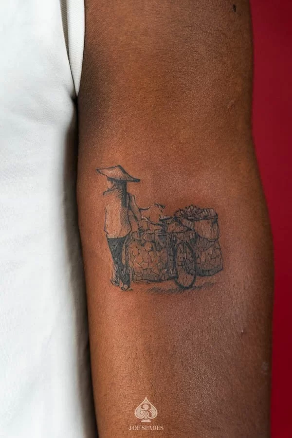 A Vietnamese Street Woman tattoo embodies a story that words alone cannot capture. The specific meaning can vary based on the design elements, style, and personal intention of the wearer. Our artists at 3 Of Spades Tattoo Hanoi can help you incorporate meaningful details into your unique design.