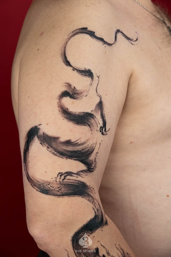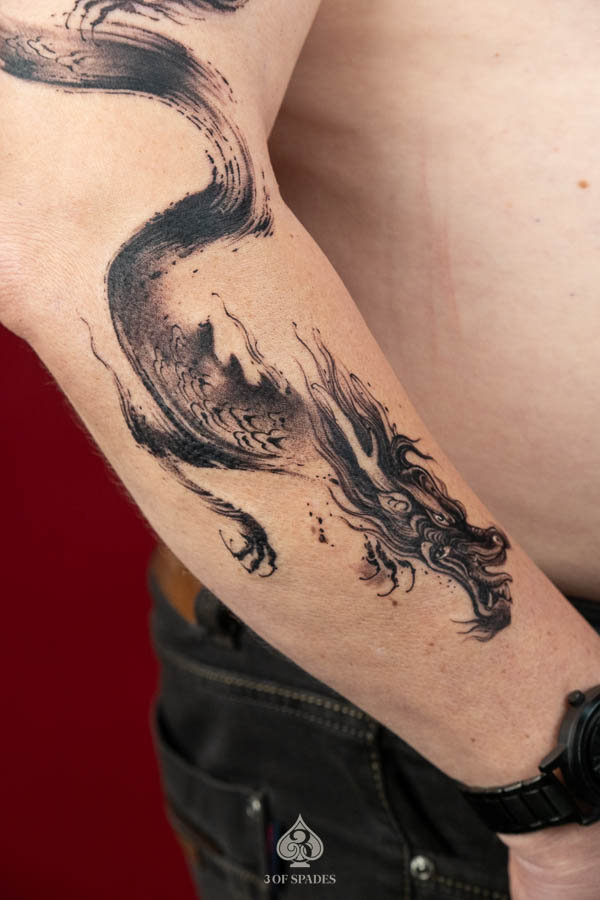dragon brush full arm tattoo