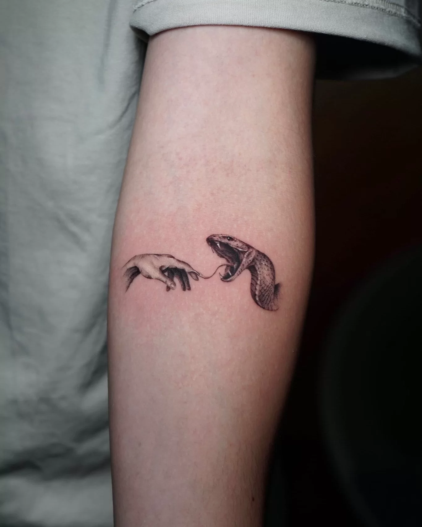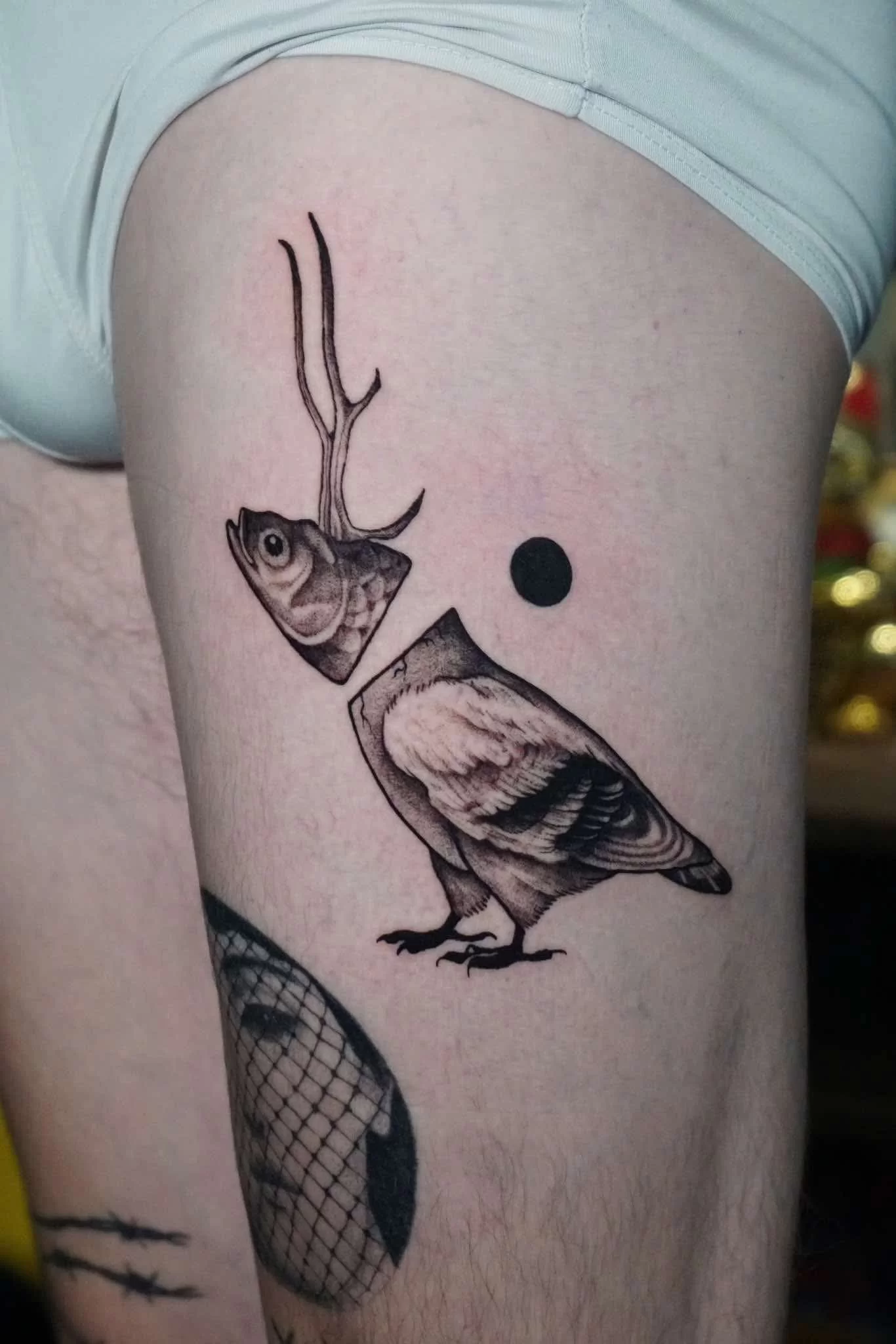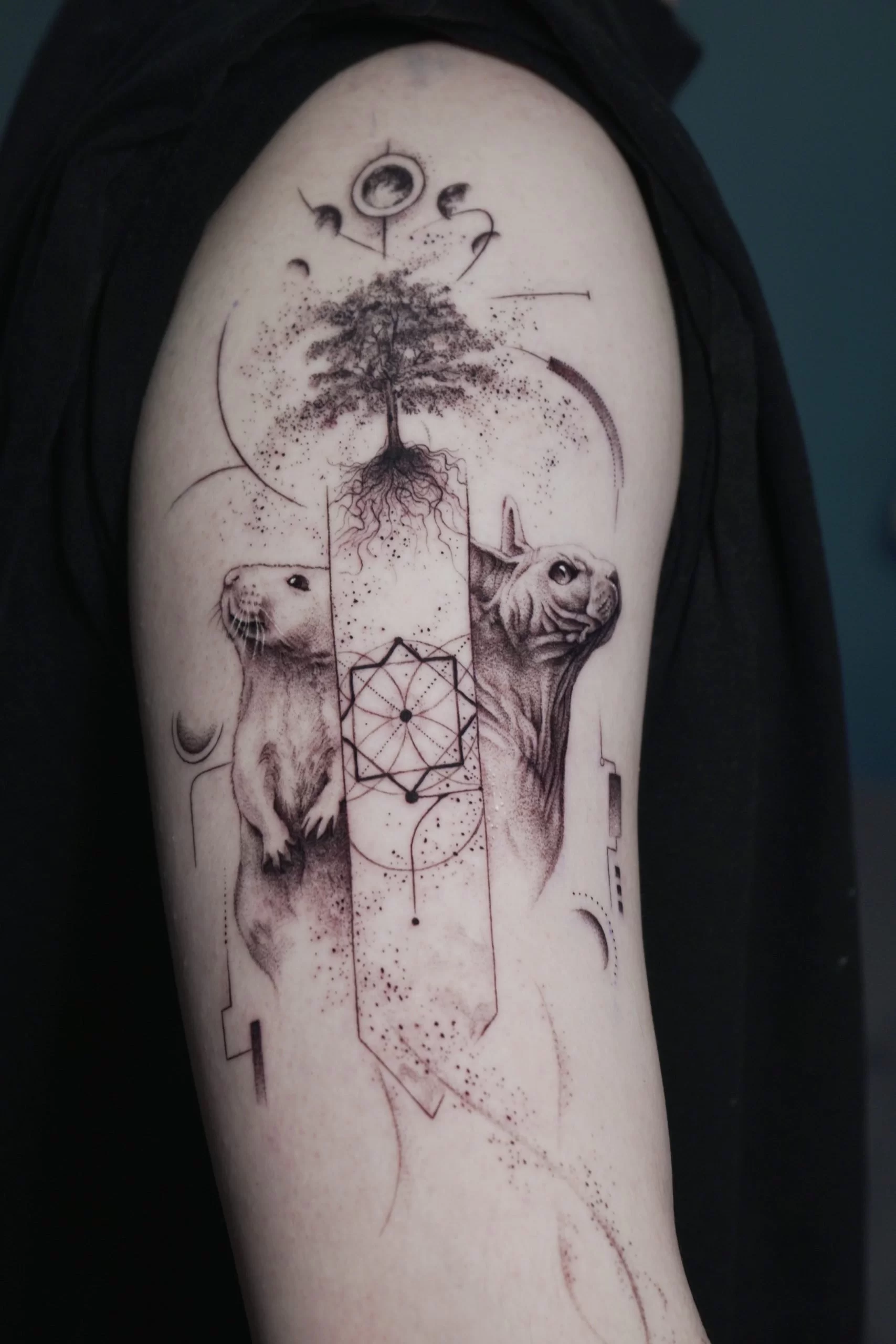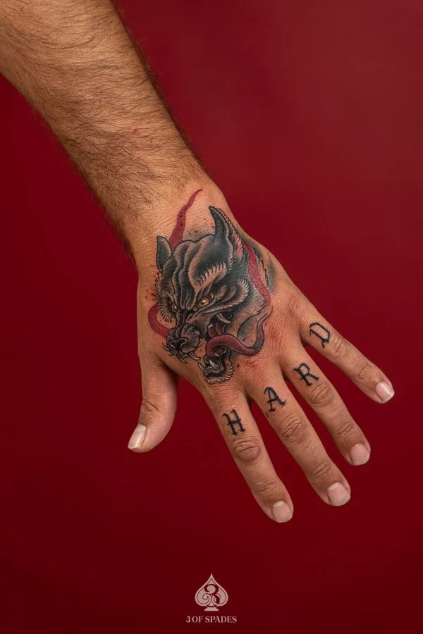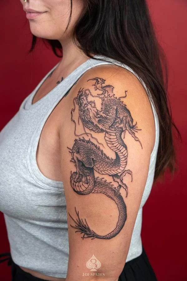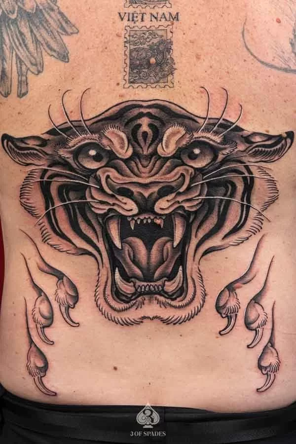 A professional tattoo artist at 3 of Spades Hanoi Tattoo Studio, specializing in blackwork, realism and color tattoo designs.
