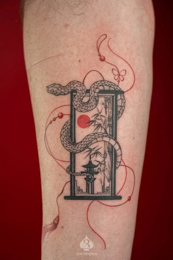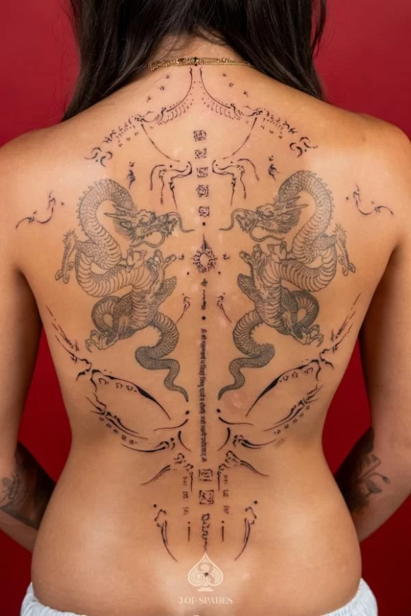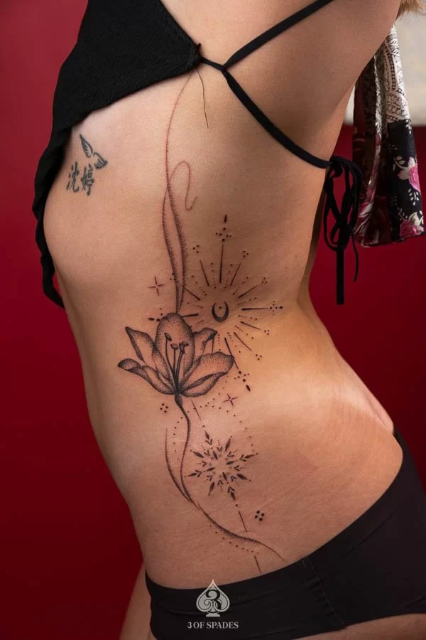 Moe is a professional tattoo artist in Hanoi at 3 of Spades Hanoi Tattoo Studio, creating custom fine line, ornamental and scripture tattoo designs with strong skills.